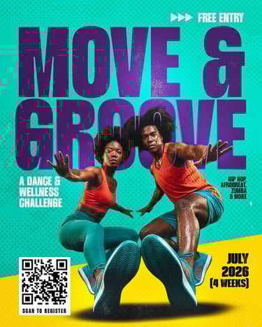Move & Groove is our annual community dance fitness initiative. Over four weeks, participants come together to celebrate health, fitness, and joy through movement. Designed especially for underserved neighborhoods, this program makes fitness fun, accessible, and community-driven.
